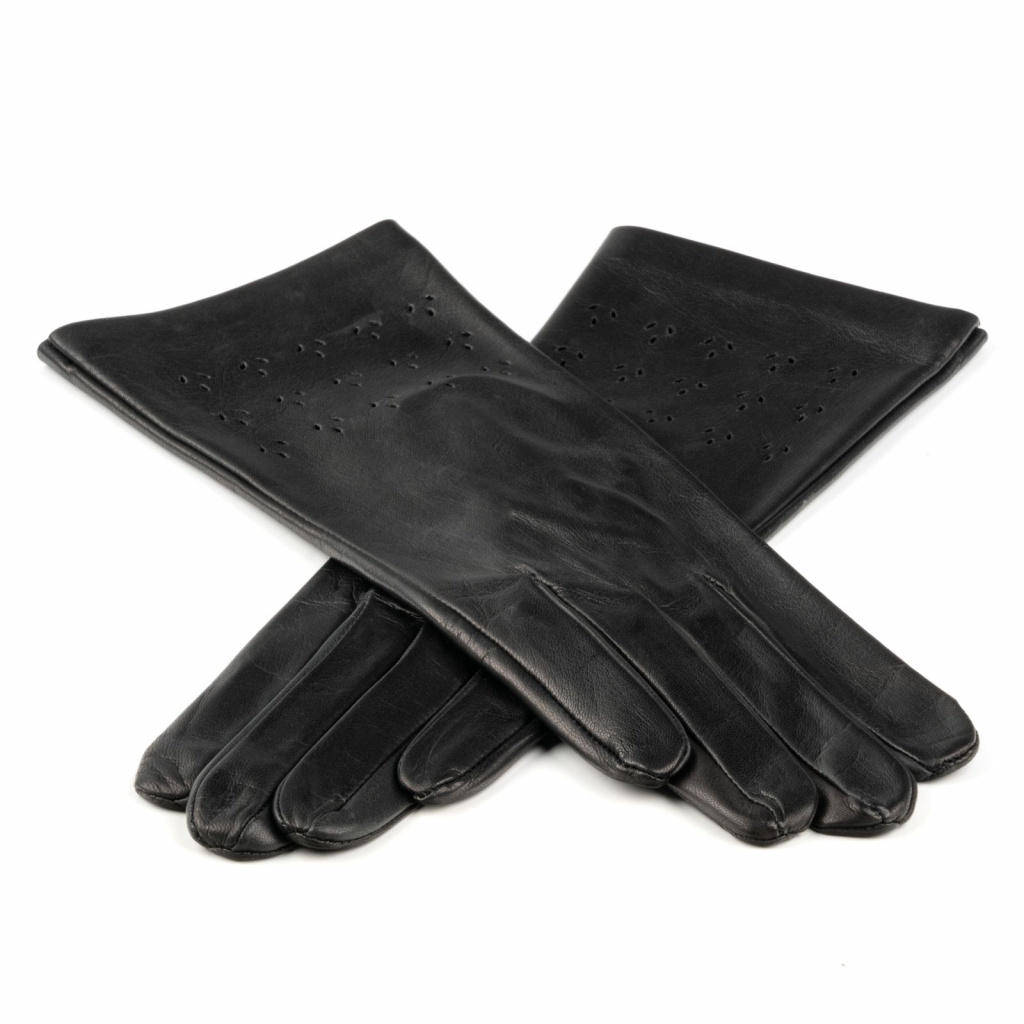 Dámské bezpodšívkové rukavice s ozdobným proseknutím v horní části.